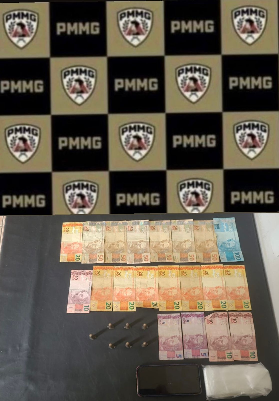 No imóvel, foram apreendidos seis pinos de cocaína, totalizando sete pinos, além de materiais utilizados para fracionamento da droga e certa quantia em dinheiro. O homem foi preso em flagrante por tráfico ilícito de drogas. A motocicleta conduzida por ele foi removida por irregularidades na documentação e pelo fato de o suspeito ser inabilitado.